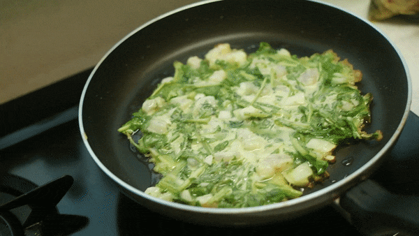 You have to put a lot of oil in advance to make the pancakes crispy!